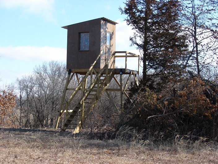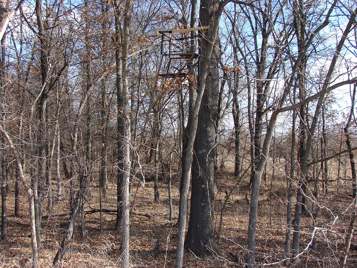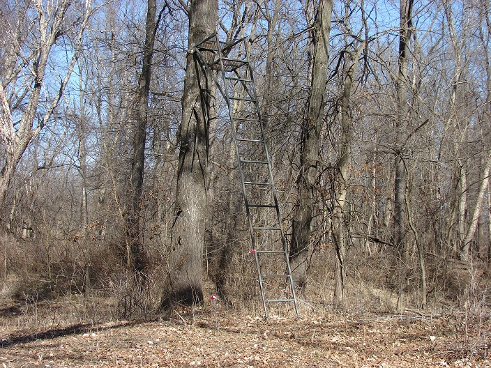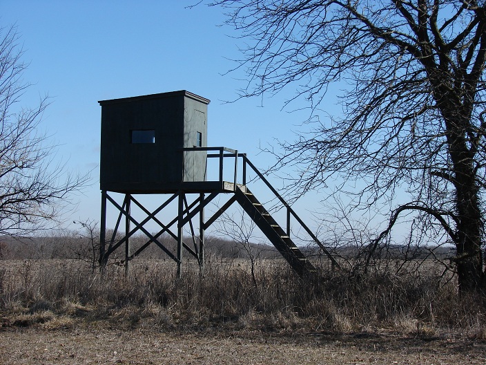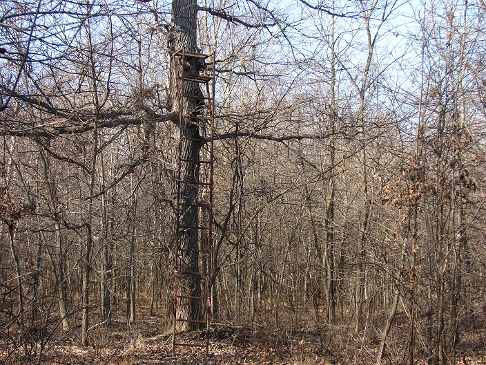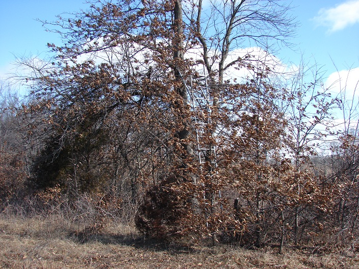 We have 52 metal ladder stands on our properties, and several wooden ladder stands. We also offer several very comfortable shooting houses and popup blinds for elderly or handicapped hunters. Our tree stands are placed on field edges, bottle necks, and funnel areas. Here at Hickory Hill we spend alot of time scouting year round. We pride ourselves on stand placement, but sometimes you may need to move to a different tree. The paths to the tree stands are trail packed and ribboned making it easy to find the stands. We also use hang-ons, or if you would like, you are welcome to bring a climber. Our goal here at Hickory Hill is to help you harvest a trophy midwest whitetail buck, and have the hunt of a lifetime.